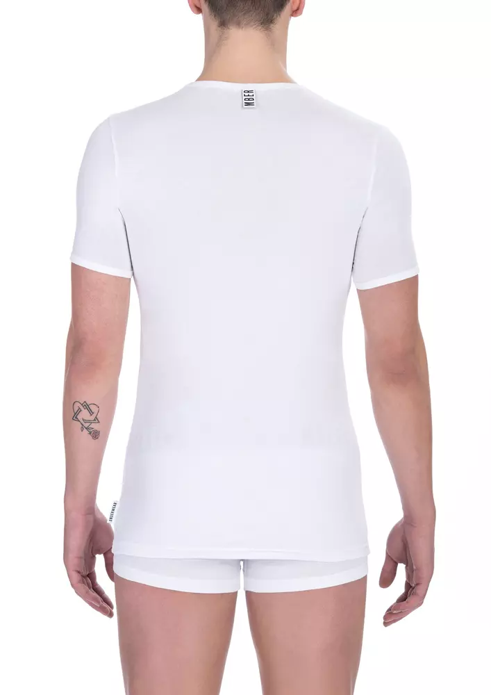 Elevate your wardrobe essentials with the Bikkembergs Bi-pack Crew Neck T-shirt. The epitome of casual refinement, this crisp white tee pairs perfectly with everything from denim to tailored trousers. Crafted from a superior blend of cotton and elastane, it promises unmatched comfort and a flattering fit. Each pack delivers double the style, ensuring you’re impeccably dressed for any occasion.