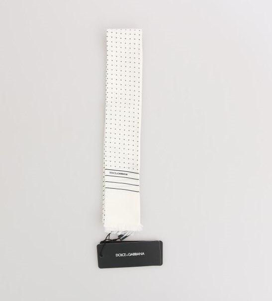 White Polka Dotted Silk Skinny Scarf designed by Dolce&Gabbana